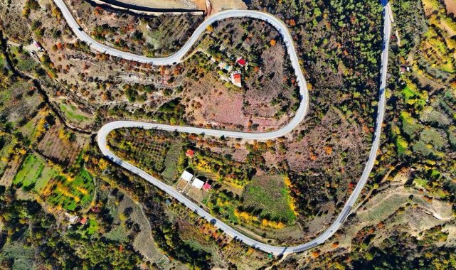 Eskişehir'in mikroklima iklimi nedeniyle 'Akdeniz'i' olarak bilinen Sarıcakaya ilçesi, sonbahar aylarında doğanın sunduğu eşsiz renk paletiyle ziyaretçilerini büyülüyor. İlçenin dört bir yanını saran ağaçların yapraklarının sarı, yeşil, kahverengi ve kızılın binbir tonuna bürünmesi, adeta bir renk cümbüşü oluşturdu. Bu görsel şölen, dron ile havadan kayıt altına alınarak doğanın sunduğu muhteşem kontrastlar ve kartpostallık manzaralar gözler önüne serildi.