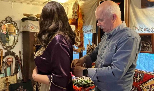 Odunpazarı'nda 12 yıldır Eskişehir'in kültürünü yaşatan Necdet Erduran, dükkânına gelen turistlere yöresel kıyafetleri cüz'i bir miktarda deneterek onlara farklı bir deneyim kazandırıyor.