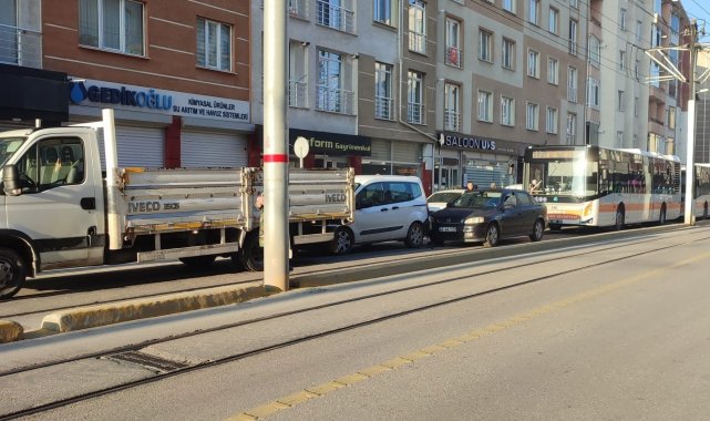 Eskişehir'de tramvay yolu üzerinde 3 aracın çarpışmasıyla meydana gelen maddi hasarlı trafik kazası sonucu şehir içi ulaşımda aksamalar meydana geldi.
