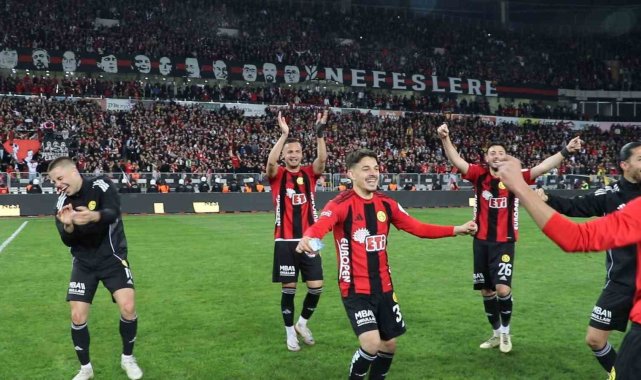TFF 3. Lig Yükselme Play-Off 1. Tur rövanş maçında sahasında Balıkesirspor'u 3-0 mağlup eden Eskişehirspor'da, maç sonu büyük sevinç yaşandı. Siyah-kırmızılı futbolcular, tur sevincini saha ortasında çiftetelli oynayarak kutladı.