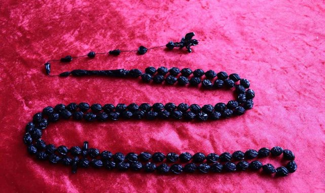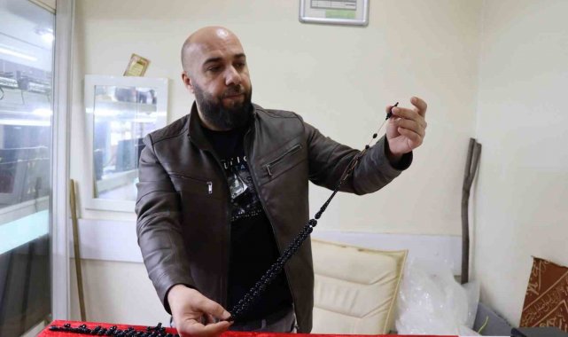Erzurum'un Oltu ilçesinde Oltu Taşı Ustası Mahmut Çelebi'nin Esmâ-i Hüsnâ tespihleri dünyaya satılıyor.