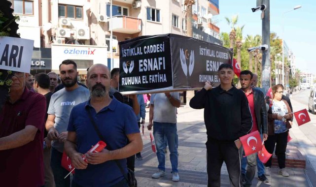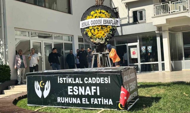 Denizli Büyükşehir Belediyesi tarafından İstiklal Caddesinde hayata geçirilen 'Otobüs Yolu' projesinden şikayetçi olan esnaf ve vatandaşlar, "İstiklal Caddesi esnafı ruhuna el Fatiha' yazılı tabut ve siyah çelenkle büyükşehir belediyesine yürüdü. Tabutu belediyenin girişine bırakan esnaf, kapanmaya başlayan işyerlerine dikkat çekti.