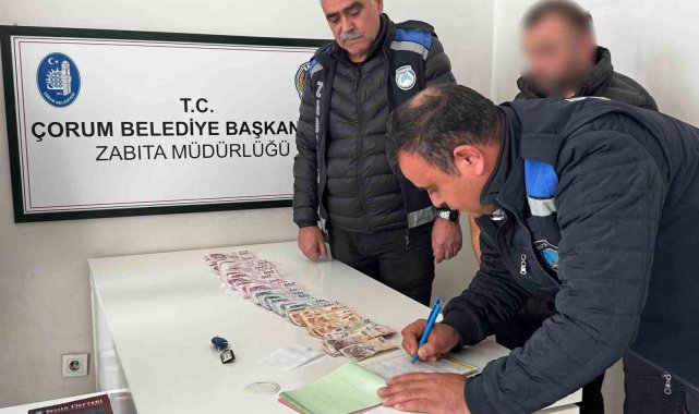 Çorum'da sanayi esnafından para toplayan dilenci, zabıta ekipleri tarafından üzerindeki 9 bin 800 TL parayla yakalandı.