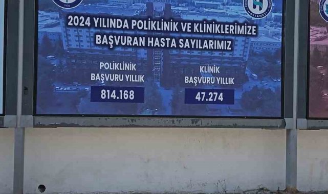 ESOGÜ kampüsündeki billboardlara Tıp Fakültesi Hastanesi hakkında önemli bilgilerin yer aldığı bazı afişler yerleştirildi. Afişlerde paylaşılan bilgilere göre; 2024 yılında ESOGÜ polikliniklerine 814 bin 168 hasta, kliniklere de 47 bin 274 hasta başvurdu. Acil servise ise ayaktan 128 bin 128 hasta müracaat ederken, 10 bin 962 hastanın yatışı gerçekleştirildi.