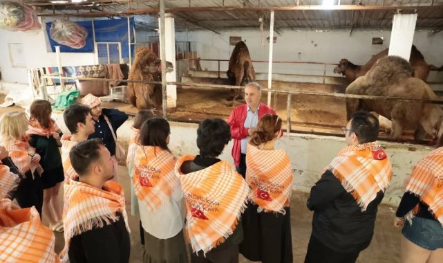 Estonya'dan gelen üniversite öğrencileri Aydın'ın İncirliova ilçesinde deve çiftliğinde incelemelerde bulunup, deve sütü içti.