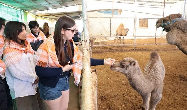 Estonyalı öğrenciler deve çiftliğini gezdi