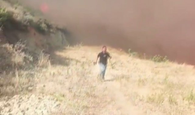 'Etim eriyor gibi yandığımı hissediyordum' diyen operatörün alevlerin içinden son anda kurtulduğu anlar kamerada