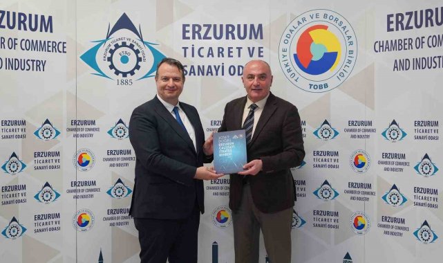 KOSGEB Başkan Yardımcısı Selim Serkan Ercan, Ekosistem Destekleri Dairesi Başkanı Muhammet Mustafa Kurt ve KOSGEB Erzurum Müdürü Lütfullah Aktaş, TOBB Yönetim Kurulu Üyesi ve ETSO Başkanı Saim Özakalın'ı makamında ziyaret etti.