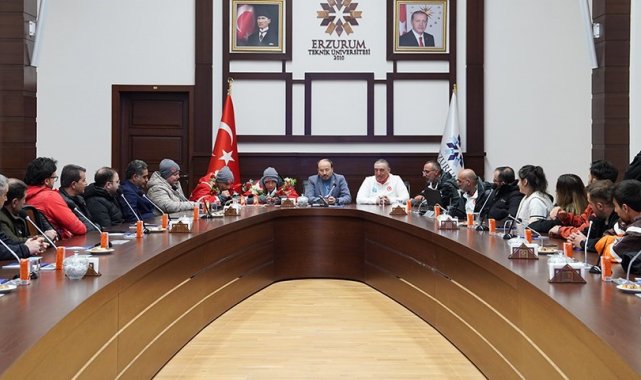 Karşılamanın ardından Milli Sporcuları, teknik heyeti ve sporcuların ailesini ETÜ'de ağırlayan Rektör Çakmak, büyük bir gurur yaşadıklarını ifade ederek: "Sporcularımızın üniversitemizde öğrenci olmaları bizim için ayrı bir gurur vesilesi. Öğrencilerimiz geçtiğimiz yıl da dünya şampiyonasından madalya ile dönmüştü. Bu yıl da bizi şaşırtmadılar ve kazandıkları madalyalarla ülkemizi, şehrimizi ve üniversitemizi gururlandırdılar. Tabii her öğrencimizin kazandığı madalya bizler için son derece önemli. Ancak çok zor şartlarda mücadele eden Zeynep ve Murat'ın elde ettikleri başarının ayrı bir anlamı var. Bizler bu başarının arkasında ne emekler olduğunu çok iyi biliyoruz. Bu vesileyle başta sporcularımızın kendileri olmak üzere ailesini ve antrenörlerini yürekten tebrik ediyor, başarılarının devamını diliyorum" diye konuştu.