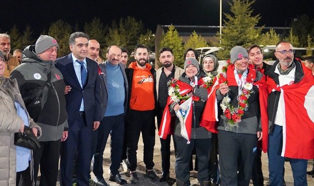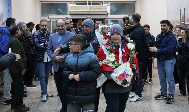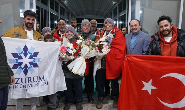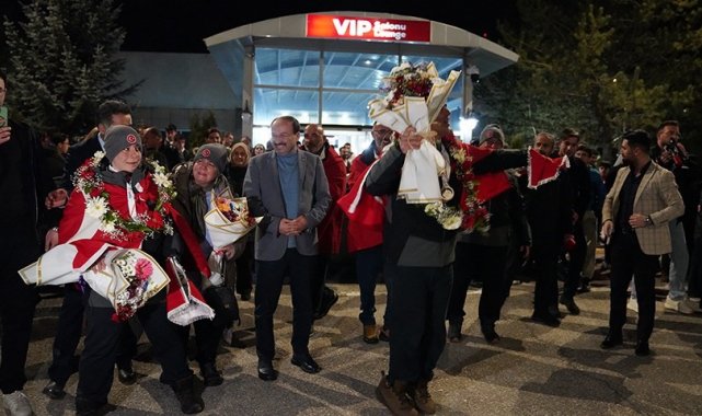 Fransa'dan çifte madalya ile Erzurum'a dönen ikiz kardeşler için havalimanında karşılama töreni düzenlenirken alanda ETÜ Rektörü Prof. Dr. Bülent Çakmak'ın yanı sıra çok sayıda akademisyen ve öğrenci yer aldı.