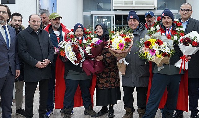 Fransa'dan altı madalya ile Erzurum'a dönen Bingül kardeşler için havalimanında karşılama töreni düzenlenirken alanda ETÜ Rektörü Prof. Dr. Bülent Çakmak'ın yanı sıra çok sayıda akademisyen ve öğrenci yer aldı.