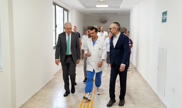 Rektör Prof. Dr. Necdet Budak, "Tam akredite, sağlık temalı, araştırma üniversitemiz bünyesinde kısa süre önce Merkezi Ameliyathanemizin açılışını yaparak hizmet sunumuna başlamıştık. Üniversitemizin topluma katkı misyonu doğrultusunda özel ehemmiyet gösterdiğimiz konuların başında sağlık hizmetleri geliyor. Başta ilimiz ve bölgemiz olmak üzere vatandaşlarımıza daha kaliteli sağlık hizmeti sunmak hedefi ile Tıp Fakültesi Hastanemizin altyapısını ve donanımını günün şartları doğrultusunda sürekli güncelledik ve son teknolojik cihazlarla donattık. Bu kapsamda; bünyesinde ameliyathaneler, doğum odaları, endoskopi salonları bulunan modern ameliyathanemizi hizmete açarak cerrahi işlemler yapılmaya başladı. Bugün nitelikli sağlık hizmeti vizyonumuz doğrultusunda hayata geçirdiğimiz, ileri teknolojiyle donatılmış ve bölgemizin sağlık kapasitesine yeni bir boyut kazandıran Merkezi Ameliyathanemizi ziyaret ettik. Bölgemizin en kapsamlı cerrahi merkezlerinden ve güçlü bir sağlık üssü olarak konumlanan yeni merkezimizle; ileri teknolojiyle donatılmış altyapısı, güçlü araştırma ekosistemi ve uygulamalı klinik görüntüleme sistemleriyle kesintisiz ve sürdürülebilir sağlık hizmetleri sunuyoruz. Yenidoğandan yetişkinlere kadar her yaş grubunun ihtiyaçlarına yönelik donanımla hizmet veren Merkezi Ameliyathanemizde, Çocuk Cerrahisi Anabilim Dalımız ilk cerrahi vakalarını başarıyla gerçekleştirdi. Emeği geçen sağlık ekiplerimize teşekkür ediyorum. Ege Üniversitesi olarak yalnızca akademik ve bilimsel üretimimizle değil; sağlık temalı araştırma üniversitesi kimliğimizle toplumun her kesimine sunduğumuz yüksek standartlı sağlık hizmetleriyle de öncü konumumuzu kararlılıkla güçlendirmeye devam ediyoruz" dedi.