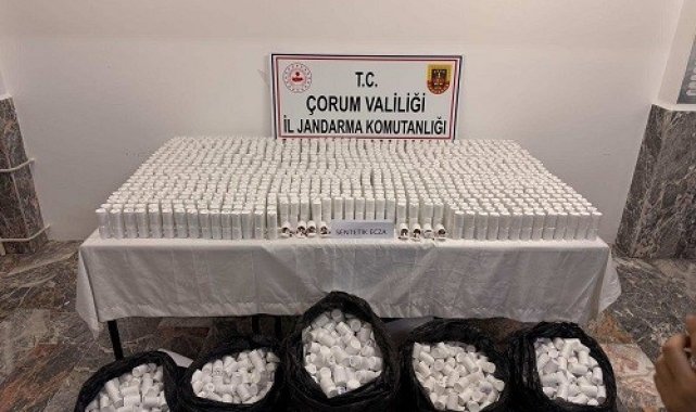 Çorum'un Laçin ilçesinde jandarma ekiplerince bir nakliye aracında yapılan aramada, 187 bin 217 adet sentetik ecza ele geçirilirken, 2 şüpheliden biri tutuklandı.