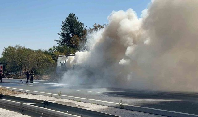 Ev eşyası yüklü tır yandı, otoyolda kuyruk oluştu