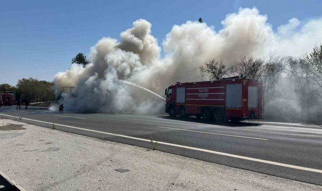 Kilometrelerce kuyruk oluşan otoyolda, yangının söndürülmesinin ardından yol, kontrollü bir şekilde yeniden trafiğe açıldı.