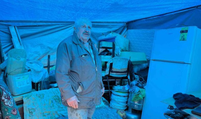 Evden çıkarılan yaşlı adam kurduğu çadırda yaşam mücadelesi veriyor