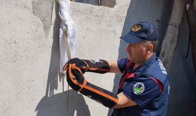 Eve giren yılan itfaiye tarafından yakalandı