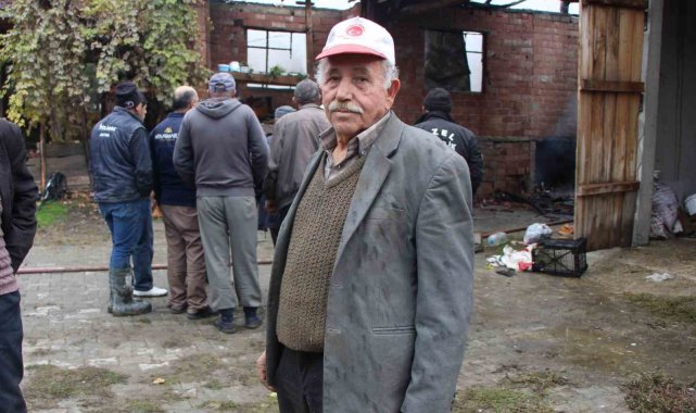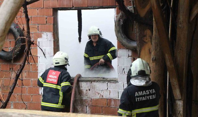 Amasya'da bir köyde yaşayan yaşlı çiftçinin tek katlı evi küle döndü. Ahırdaki hayvanlarını komşularının kurtardığı yaşlı adamın biriktirdiği paralar ve tüm eşyaları alevlere teslim oldu.