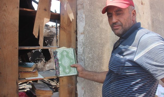 Evi yanan Ali Aydoğan, "Bu Kur'an-ı Kerim'ler babama aitti. Bir tek evden yanmadık bu Kur-an'ı Kerim'ler çıktı. Başka hiçbir şey sağ yok. Bir tek Kur-an'ı Kerim'ler çıktı" dedi.