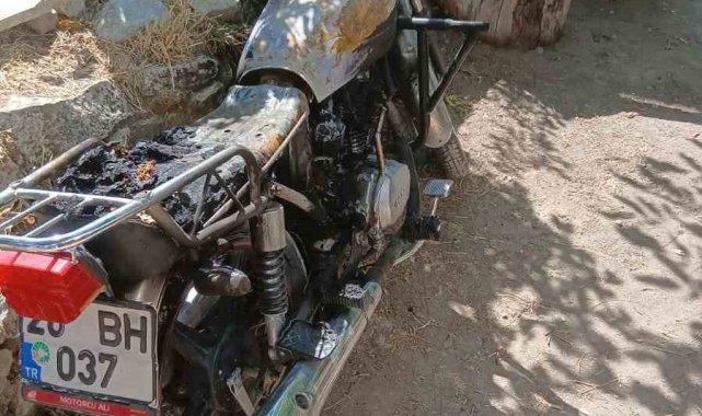 Denizli'nin Çameli ilçesi Çamlıbel Mahallesi'nde evin bahçesinde park halinde bulunan motosiklet, kimliği belirsiz kişi ya da kişiler tarafından kundaklandı.