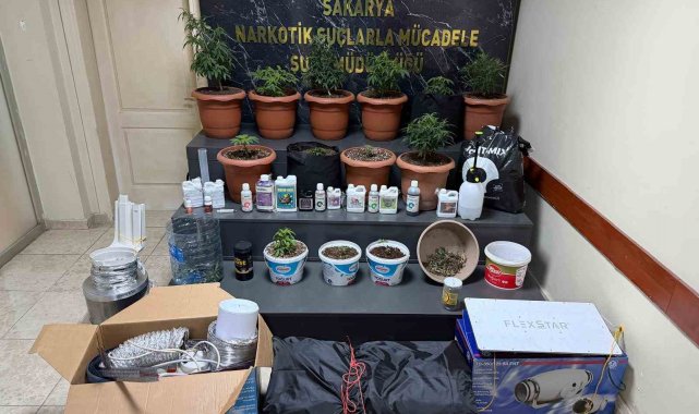 Geyve Cumhuriyet Başsavcılığının koordinesinde Sakarya İl Emniyet Müdürlüğü Narkotik Suçlarla Mücadele Şube Müdürlüğü ekiplerince Geyve ilçesinde evin bir odasını adeta uyuşturucu üretim serasına çeviren iki şüpheli yakalanarak gözaltına alındı. Yapılan aramalarda, 13 adet saksı içerisinde 15 adet (5-30 cm) Hint keneviri, kurtulmaya bırakılmış bir miktar kenevir bitkisi, kenevir yetiştirmede kullanılan 1 adet çadır, muhtelif sıvı ve toz halinde gübreler, 4 adet LED armetür, budama için kullanılan makas, 2 adet havalandırma fanı, 1 adet zamanlayıcı piriz, 1 adet nemlendirme cihazı, 1 adet ilaçlama spreyi ve yetiştirmede kullanılan bitki toprağı ele geçirildi.