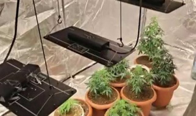 Evin bir odasını uyuşturucu serasına çeviren şüphelileri polis yakaladı