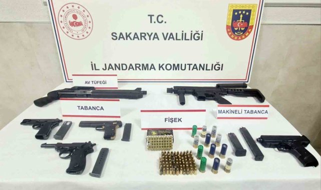 Sakarya İl Jandarma Komutanlığı ekiplerince Sapanca ilçesi Uzunkum Mahallesi'nde kaçakçılık ile mücadele çerçevesinde yürütülen operasyonda S.Y. (69) ve T.K. (38) isimli şahısların iş yeri ve eklentilerine operasyon düzenlendi. Operasyonda yapılan aramada; 3 adet ruhsatsız tabanca, 2 adet ruhsatsız makineli tabanca, 1 adet ruhsatsız av tüfeği, 120 adet fişek ile 9 adet tabanca şarjörü ele geçirildi. Gözaltına alınan şahıslar, adli işlemlerinin ardından tutuklanarak cezaevine gönderildi.