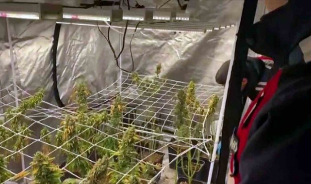 Evin odasına sera kurup, çamaşırlığa uyuşturucu asmışlar