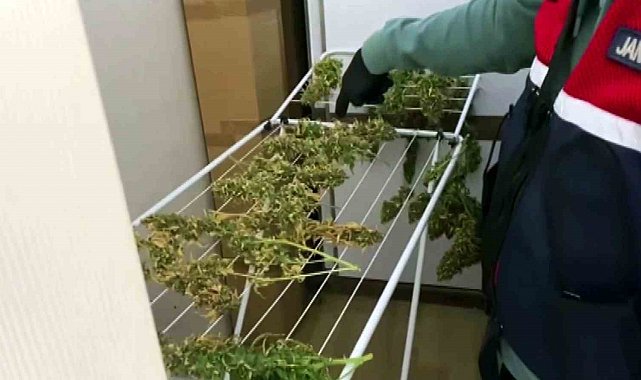 Sakarya'nın Serdivan ilçesinde evin odasını adeta seraya çeviren ve kurutmak için çamaşır askısına uyuşturucu bırakan şüpheliler, jandarma ekiplerince yakalandı.