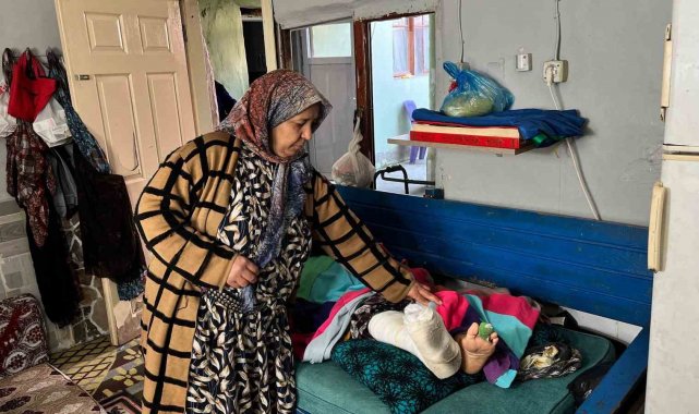 Adana'da şiddetli yağış sonucu evini su basan yaşlı kadın, evinden çıkarken düşüp ayağını kırdı. Şimdi yatağa bağlı kalan kadın yardım bekliyor.