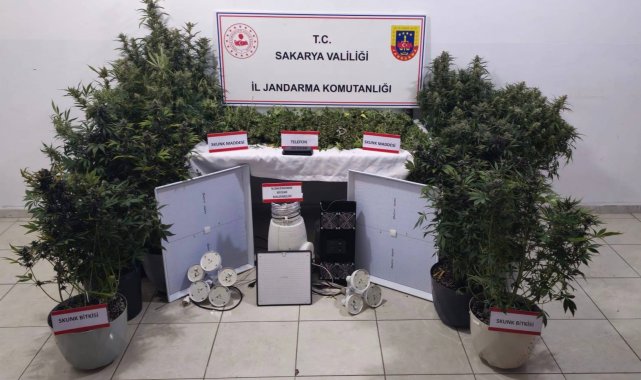 Sakarya İl Jandarma Komutanlığı sorumluluk bölgesinde uyuşturucuya geçit vermiyor. Bu çerçevede Geyve ilçesinde adeta uyuşturucu imalathanesine çevrilen eve düzenlenen operasyonda Ö.P. (29) ve M.K. (27) isimli şüpheliler gözaltına alındı. Evde yapılan aramalarda, 14 kök skunk bitkisi, 5.100 gram skunk maddesi, 1 adet iklimlendirme sistemi, muhtelif sayıda bitki besin maddeleri, 3 adet cep telefonu, 42 adet içime hazır bonzai, 5 gram bonzai maddesi, 1 adet kenevir tohumu, 1 adet kubar esrar, 1 adet ruhsatsız av tüfeği, 1 adet havalı tüfek, 1 adet havalı tabanca ele geçirildi. Gözaltına alınan M.K. adli kontrol şartıyla serbest bırakılırken, Ö.P. tutuklanarak cezaevine sevk edildi.