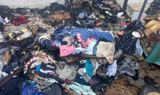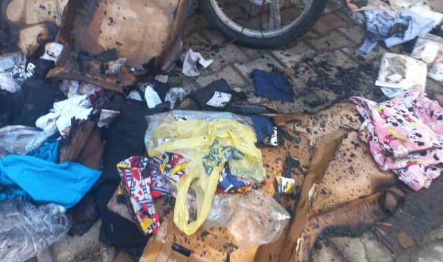 Evinin önündeki tekstil ürünleri tezgahı küle döndü
