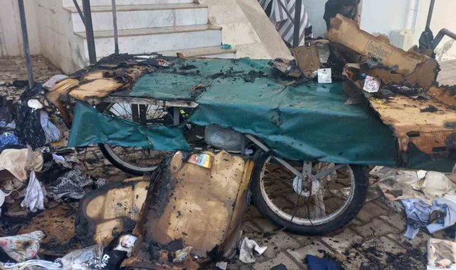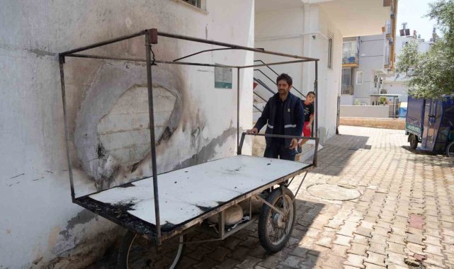 Antalya'da bir vatandaşın apartman önüne bıraktığı el arabasındaki tekstil ürünleri yandı.