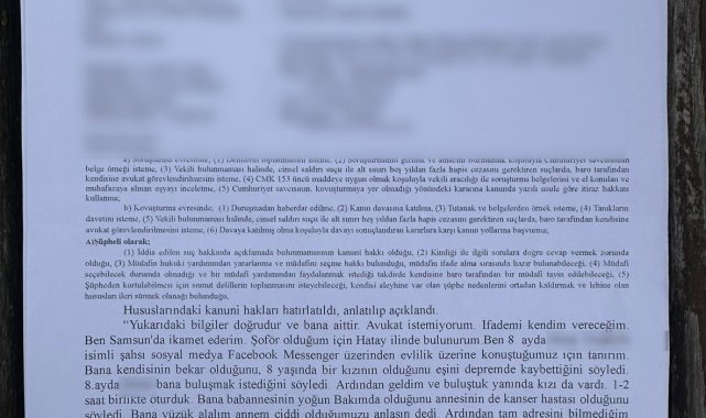 Olayı anlatan Bayraktar, "Geçen sene Hatay Kırıkhan'da çalışıyordum. Orada şoförlük yapıyordum. Sosyal medyadan Dilek isimli bir şahıs bana mesaj yazdı. Kendisinin eşinin depremde vefat ettiğini, bir tane kızı olduğunu, kızı ile birlikte yaşadığını ve evlilik düşündüğünü söyledi. Bir hafta telefonla konuştuk. Kendisinin yanına gittim; kızıyla birlikte yanıma geldi. Bir kafede oturduk ve tanıştık. Bana ailesinin ciddi olduğumuzu düşünmesi için yüzük almam gerektiğini söyledi. 25 bin TL değerinde kendisine bir yüzük aldırdı. Yüzük parasının yarısını IBAN'dan attım, diğer yarısını da peşin verdim. Bu şekilde konuşmalarımız devam etti" dedi.