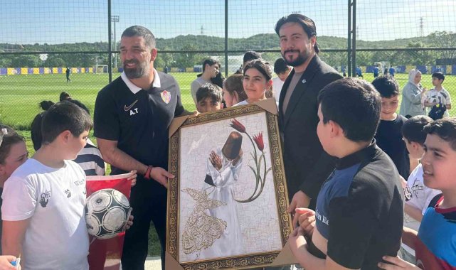 Miniklerle fotoğraf çekilen Eyüpspor Teknik Direktörü Arda Turan da ziyaretlerinden ötürü memnun olduğunu belirterek teşekkür etti. Bunun üzerine Kasım Alper Özdemir de Arda Turan'a Türkiye'yi temsil noktasında hizmetinin devamı için başarı dileklerinde bulunarak, tablo takdim etti. Özdemir, "Arda Turan dünya futbolunda gerçekten ülkemizi yıllarca başarıyla temsil etti ve milli takımımızda kaptanlık yaparak çocuklarımıza rol modellik yaptık. Messi ile bir arada oynayan, birçok kupa kazanan ve Eyüpsultan'da 2 yıldan fazla süreyle hizmeti ile gönüllerimize taht kurduğu için kendisine ilçemiz adına da teşekkür ediyoruz" diye konuştu.