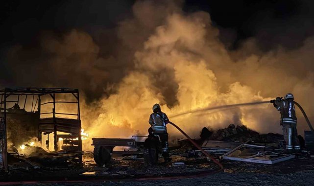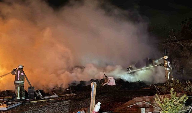 Eyüpsultan'da alevler geceyi aydınlattı: Lastik deposunda korkutan yangın