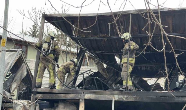 Eyüpsultan'da inşaat işçilerinin konakladığı konteynırlar alev alev yandı