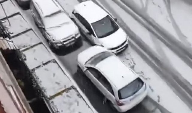 Eyüpsultan'da aralıklarla etkili olan kar yağışı beraberinde kazaları da getirdi. Yokuş aşağıya kayarak ilerleyen otomobil, park halindeki araçlara çarptı. Yaşanan kaza anı ise cep telefonu kamerasına yansıdı.