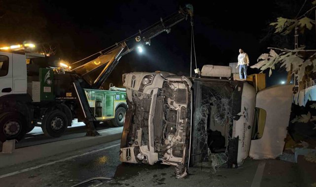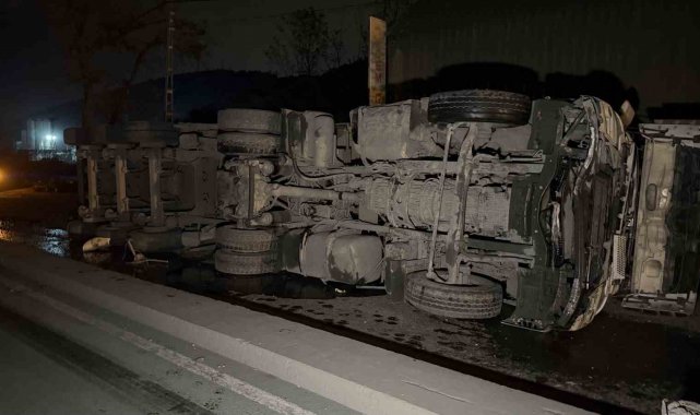 Eyüpsultan'da akşam saatlerinde seyir halindeki hafriyat kamyonu, sürücünün kontrolü kaybetmesi üzerine ters istikamete girerek yan yattı. Kazada kamyon sürücüsü yaralandı.