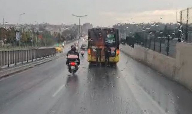 Olay, dün saat 16.00 sıralarında Eyüpsultan Beylerbeyi Caddesi üzerinde meydana geldi. Patenli iki genç, trafikte ilerleyen İETT otobüsünün arkasına tutunarak uzun süre bu şekilde yol aldı. Yağış nedeniyle kayganlaşan yolda yapılan bu tehlikeli hareket, olası bir kazaya davetiye çıkardı. Gençlerin yağışlı havaya rağmen otobüsün arkasına tutunmaları, görenlerin yüreklerini ağızlarına getirdi. Hem kendi can güvenliklerini hiçe sayan hem de trafikteki diğer sürücüleri zor durumda bırakan gençler, o anları kayda alan bir sürücünün tepkisine neden oldu.