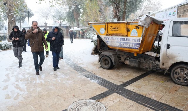 Eyyübiye Belediye Başkanı Mehmet Kuş'un, sahada bizzat koordine ettiği karla mücadele çalışmalarına Fen İşleri Müdürlüğü, Temizlik Müdürlüğü ve Çevre Koruma Kontrol Müdürlüğü ekipleri tam kadro katıldı. Öncelikle belediyenin sorumluluk alanında bulunan tüm yolları ulaşıma açık tutmaya gayret eden ekipler, kırsal bölgelerin yollarında da ulaşımın kesintisiz sağlanması için görev aldı. Yılın son gününde karla mücadele eden Eyyübiye Belediyesi ekipleri, Dergah ve Balıklıgöl civarı, Eyyüp Peygamber Makamı ve çevresinde de ziyaretçilerin rahat edebilmesi amacıyla kar temizleme çalışmaları gerçekleştirildi. Ekiplerin çalışmasını sahada koordine eden ve vatandaşlarla bir araya gelen Mehmet Kuş, kuraklık tehlikesiyle karşı karşıya olan Şanlıurfa'da gerçekleşen kar yağışının sevinçle karşılandığını belirterek, yağışın olumsuz etkilerine karşı sahada olmaya devam edeceklerini ifade etti.