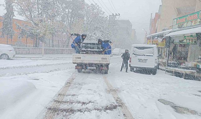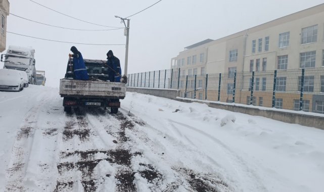 Yoğun kar yağışının etkili olduğu Şanlıurfa'da Eyyübiye Belediyesi ekipleri, tuzlama ve kar küreme çalışmalarını sürdürüyor.