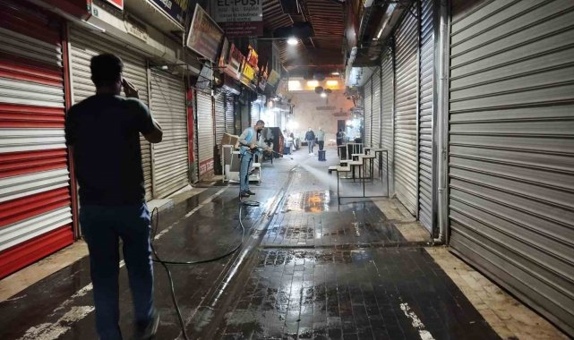 Eyyübiye ilçesinde caddeler, sokaklar, çarşılar ve tarihi alanlar yıkanarak temizleniyor.