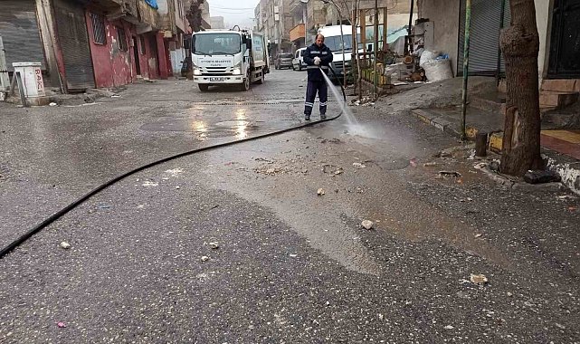 Şanlıurfa'nın Eyyübiye ilçesinde harekete geçen belediye ekipler, kısmi sel baskınlarının yaşadığı mahallelerde temizlik çalışmalarını sürdürüyor.