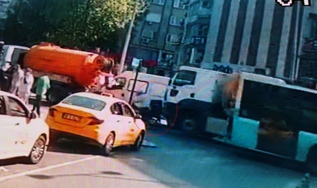 Çarpışma sonrası direksiyon hakimiyetini kaybeden motosikletli üzerinden düşerken bu kez vidanjör motosikleti ezdi.