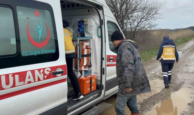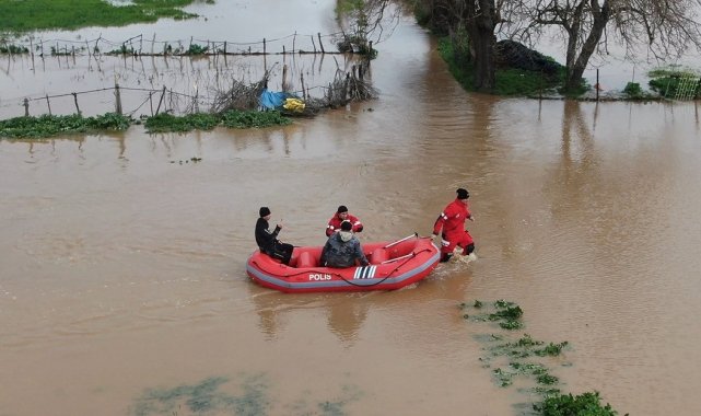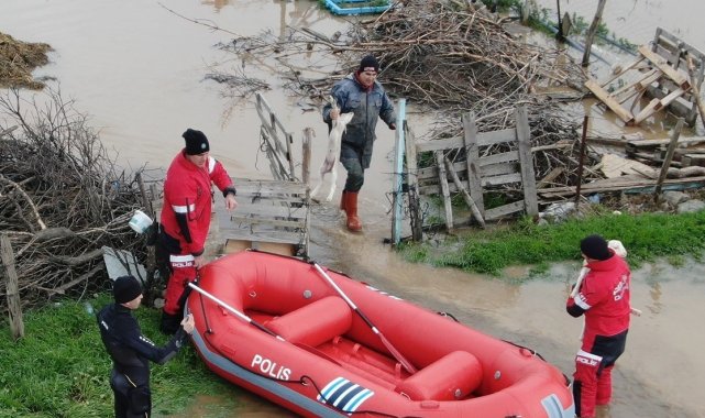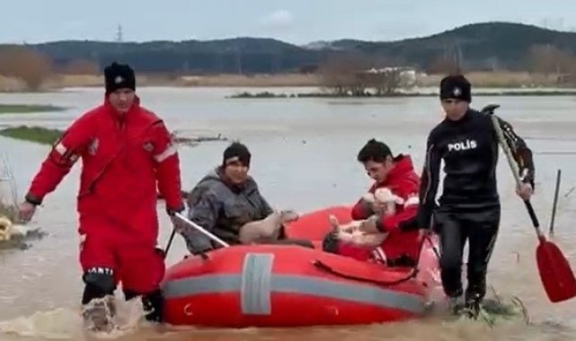 Ezine'de Menderes Çayı taştı, kışlada hayvanlarıyla mahsur kalan adam kurtarıldı