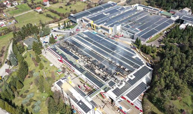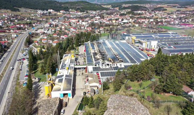 Bolu'nun Mengen ilçesindeki yangın çıkan werzalit fabrikası havadan görüntülendi.
