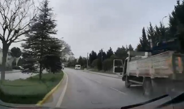 Kocaeli'nin İzmit ilçesinde geri kayarak takla atan ve refüjdeki 3 ağacı yerinden söken kamyonun kaza anı araç kamerasına saniye saniye yansıdı. Kasasındaki malzemelerin yola saçıldığı ve şans eseri yaralananın olmadığı kaza nedeniyle bulvarda trafik tek şeride düşürüldü.