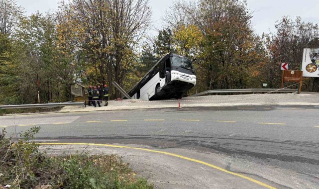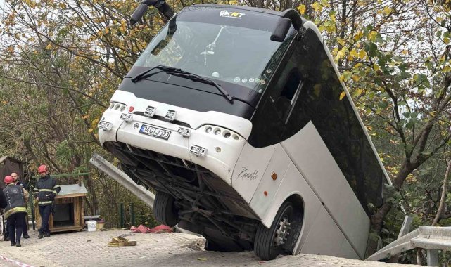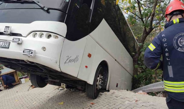 Kocaeli'nin Kartepe ilçesinde park halindeyken hareket eden tur otobüsü bariyeri aşıp şarampole düştü. Facianın eşiğinden dönüldüğü kazada yaralanan olmadı.