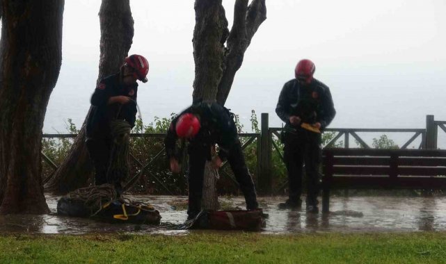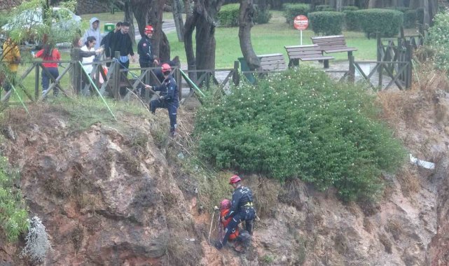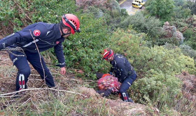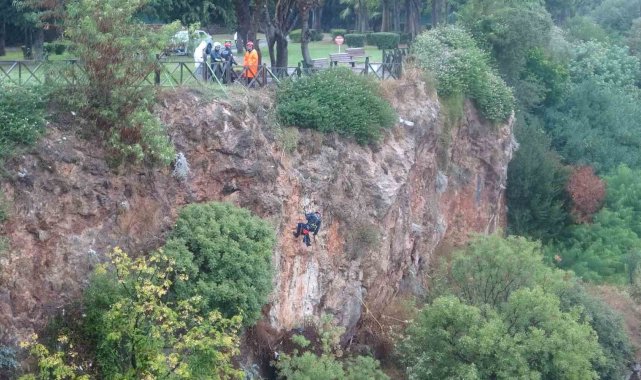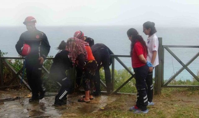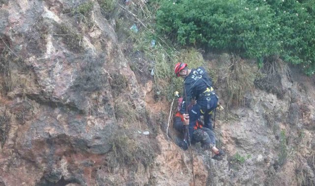 Falezlerde mahsur kalan kadın itfaiyenin zorlu operasyonuyla kurtarıldı